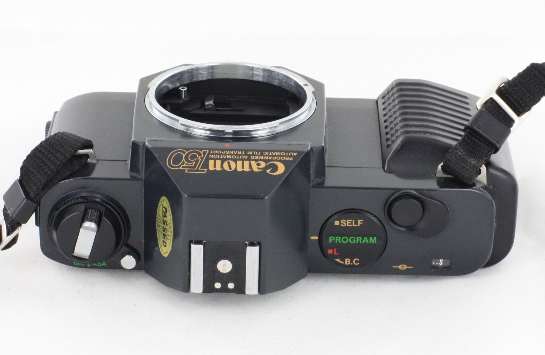 The T50 used a new shutter design. Canon's previous A series cameras used a horizontally travelling cloth shutter, while the T50 (and subsequent T series models) used a vertically travelling metal blade shutter which allowed for faster shutter speeds and higher flash X-sync speeds. Only a modest increase was seen in the T50; more would be available in subsequent cameras.