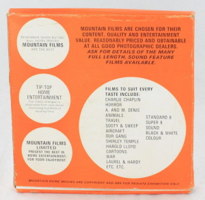 Mountain Films was started by Peter Burt in the early 1960's. Mountain Film prints were priced cheaply and had highly variable quality. This was a result of a number of different film labs being used for production. Depending on the film genre, Mountain would sell films under other trade names as well, including: MailMaster, MovieMatic, CineVision, Starline, Heritage, Portland Films and others as well. It distributed Ken Films in the UK. Mountain Films closed their doors in 1986.