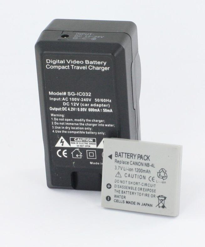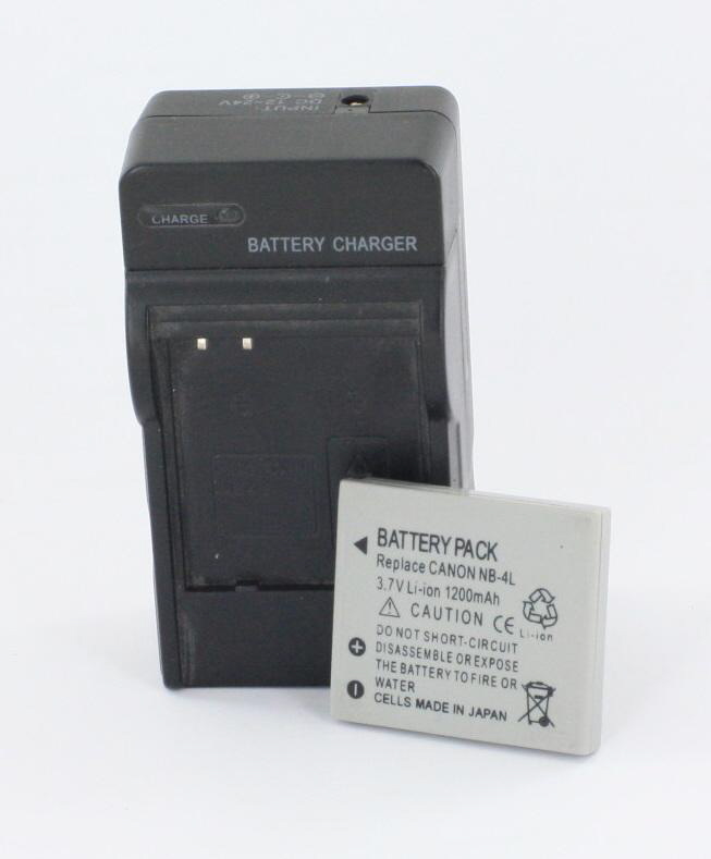 Mains Battery Charger for Canon NB-4L & Battery