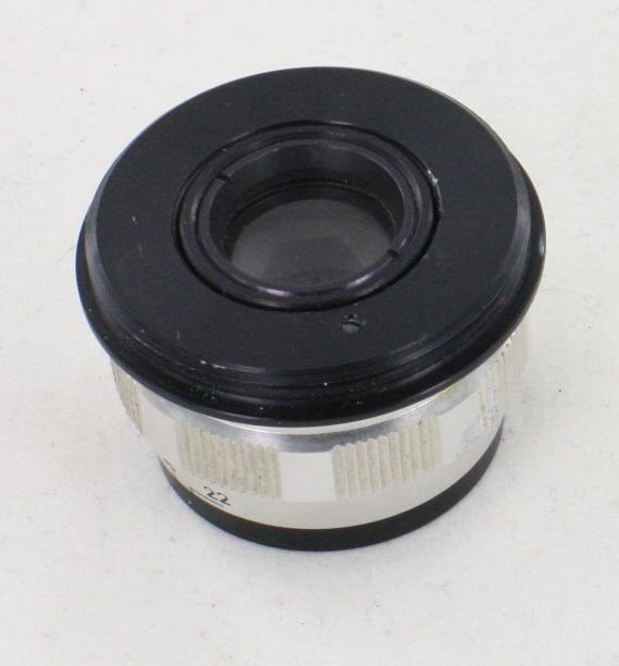 Enlarger lens with clicked aperture, no focusing helicoid and a 23.5mm rear thread. Metal body in black and silver grey finish.