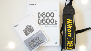 Supplied with Nikon D800 Wide strap, Nikon body cap, BN-12 screen protector, EL15 Nikon battery, Nikon mains battery charger and Instruction book