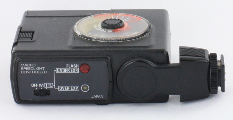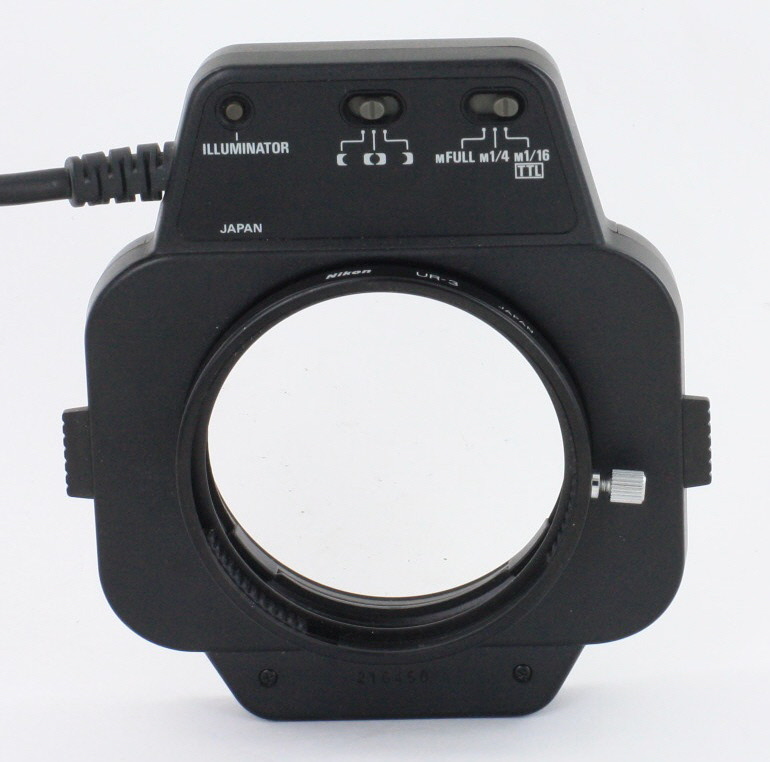 Automatic macro ring flash for Nikon. The flash has a dial switch for manual flash with 1/1, 1/4 and 1/16 output. Standard hot shoe.