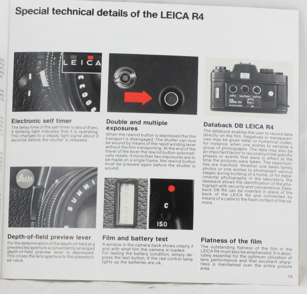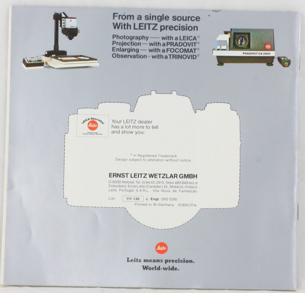 There are currently 0 reviews for Leica R4 The Camera for Creative Photography Booklet P-1006. Use the tabs below to read reviews, ask a question, add your own review, see delivery information or check our Maintenance tips.